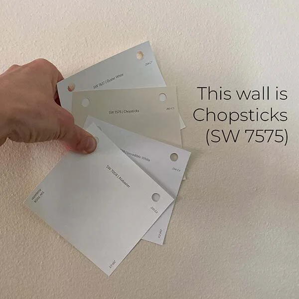 Don’t be afraid of dark, warm whites — they will look lighter on the wall. Even though the Chopsticks paper swatch in the photo above looks dark and dirty with the other samples, it looks fresh as a paint color when applied!